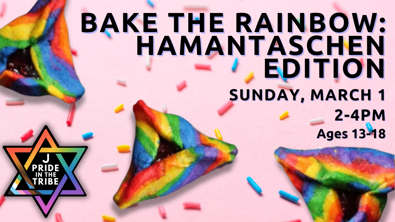 Roll, fill, and bake your own rainbow hamantaschen with Pride in the Tribe, a community for LGBTQ+ teens and allies (ages 13–18)! We’ll get creative with colorful dough, celebrate Purim, and enjoy the results together. Come bake, hang out, and make something sweet while celebrating queer joy and Jewish tradition.